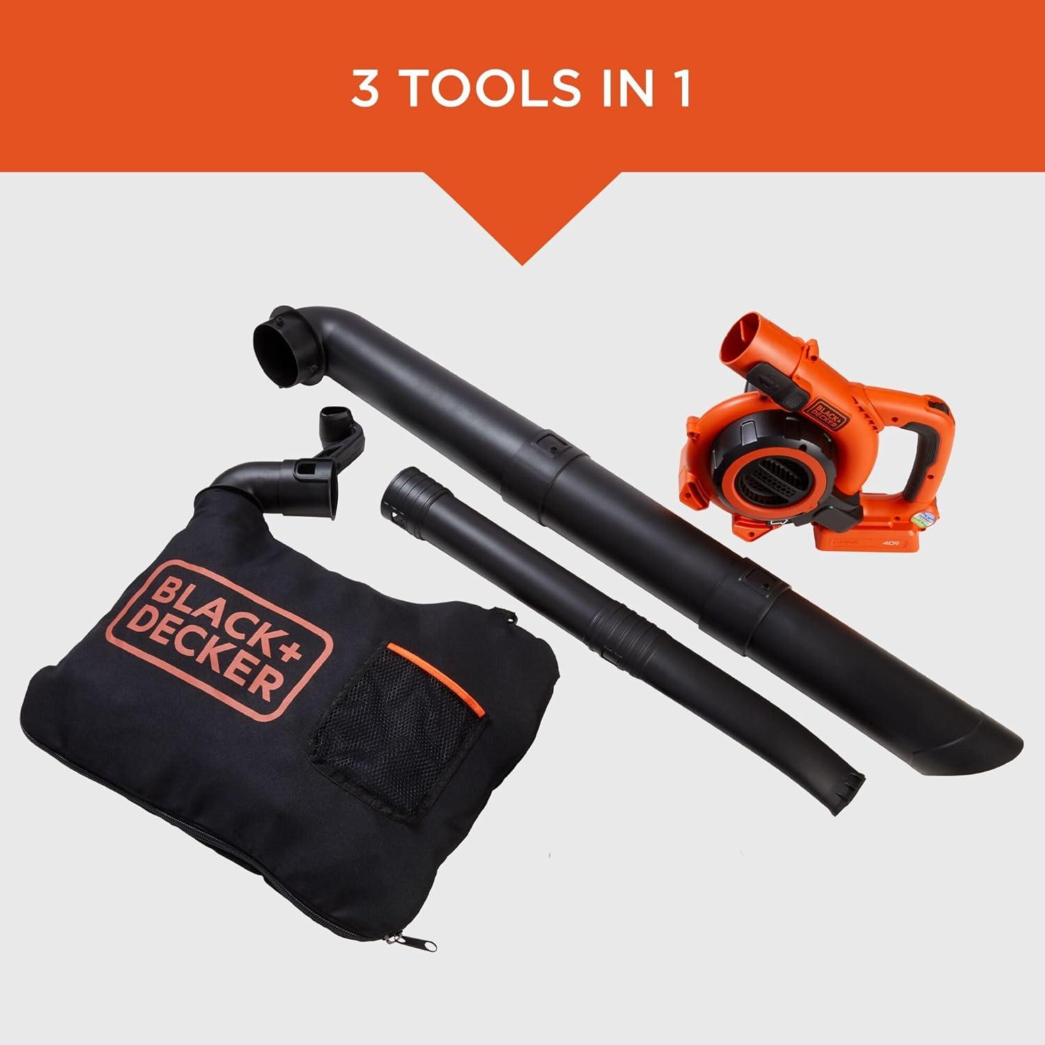 Power up your yard cleanup with the cordless BLACK+DECKER 40-volt Lithium Sweeper/Vacuum (model LSWV36), which eliminates the weight, noise and hassles of gas-powered equipment. In addition to blowing debris, you can switch to vacuum mode to mulch leaves and more into its included half-bushel collection bag. It's powered by BLACK+DECKER's high-powered 40-volt lithium battery system, which offers power, excellent runtime, and the versatility to share batteries with other tools within the system.