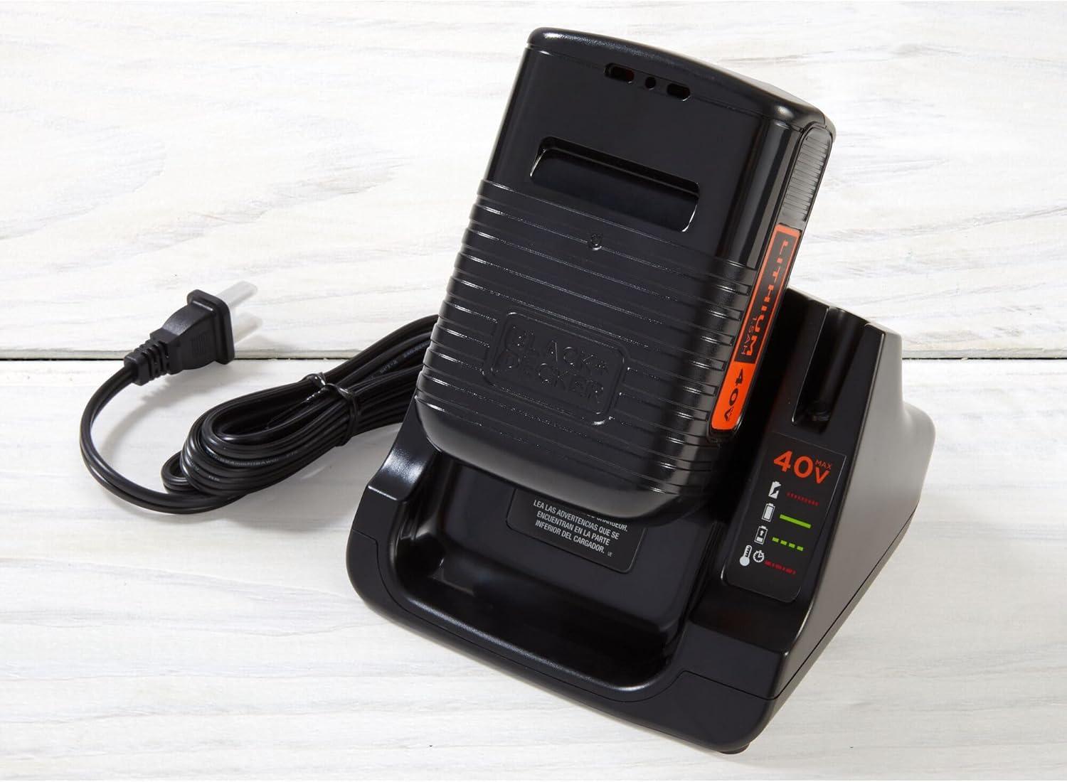 BLACK+DECKER's 40-volt lithium-ion system offers numerous benefits over older battery technologies and gas options, notably the ability to put more power into a small and compact battery. Lithium batteries have a longer lifecycle than other types, and they also hold their charge longer when taken off the charger. This means that once charged, a lithium battery is always ready to use. The included Energy Star-rated fast charger fully recharges the battery in about 1 hour.