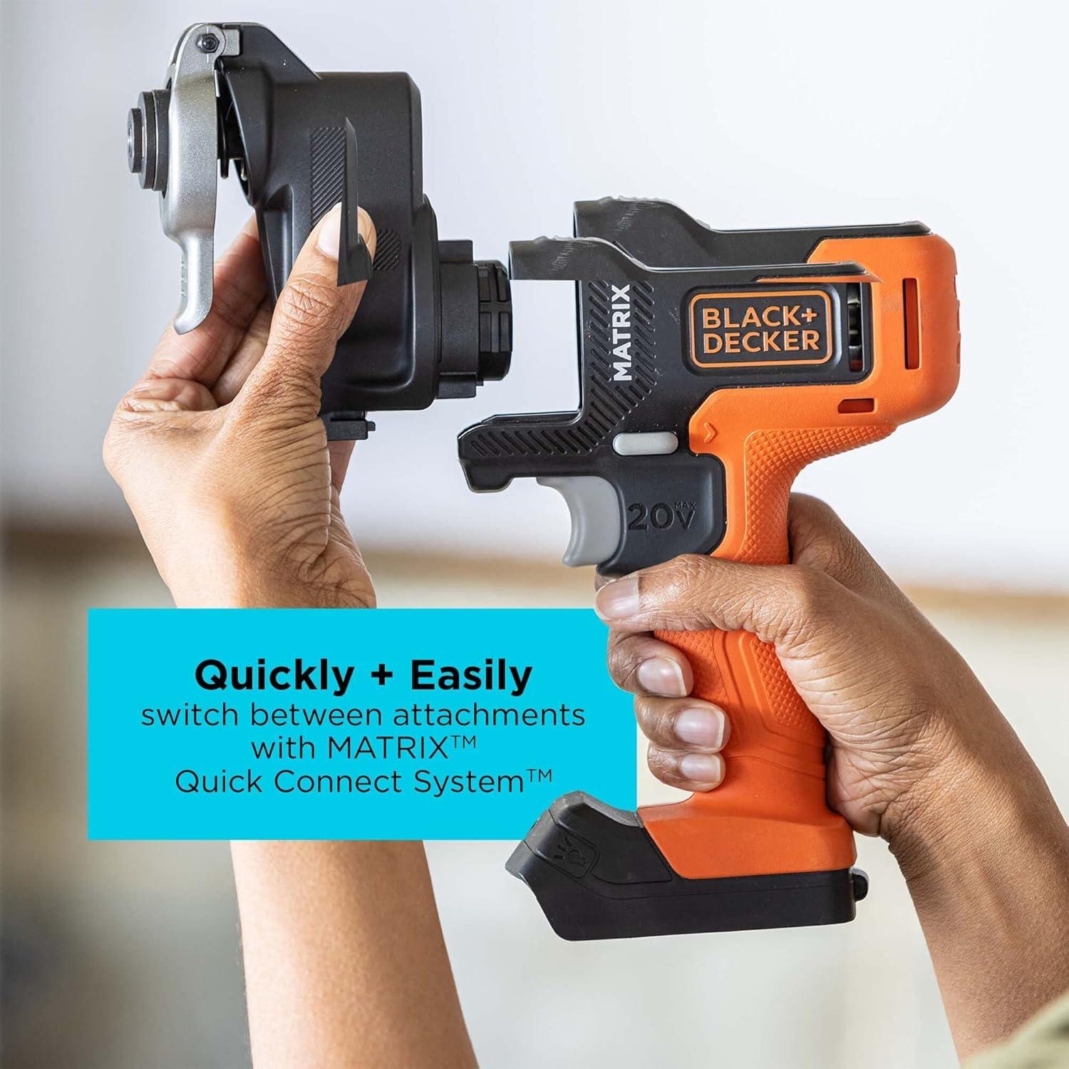 The BLACK+DECKER MATRIX(TM) Oscillating Multi-tool Attachment + Storage Case is part of the MATRIX(TM) Quick Connect System (TM). This attachment can be used with any Power Unit in the MATRIX (TM) System (Power Unit Sold Separately). Includes: (1) Oscillating Multi-tool Attachment and (1) storage case.