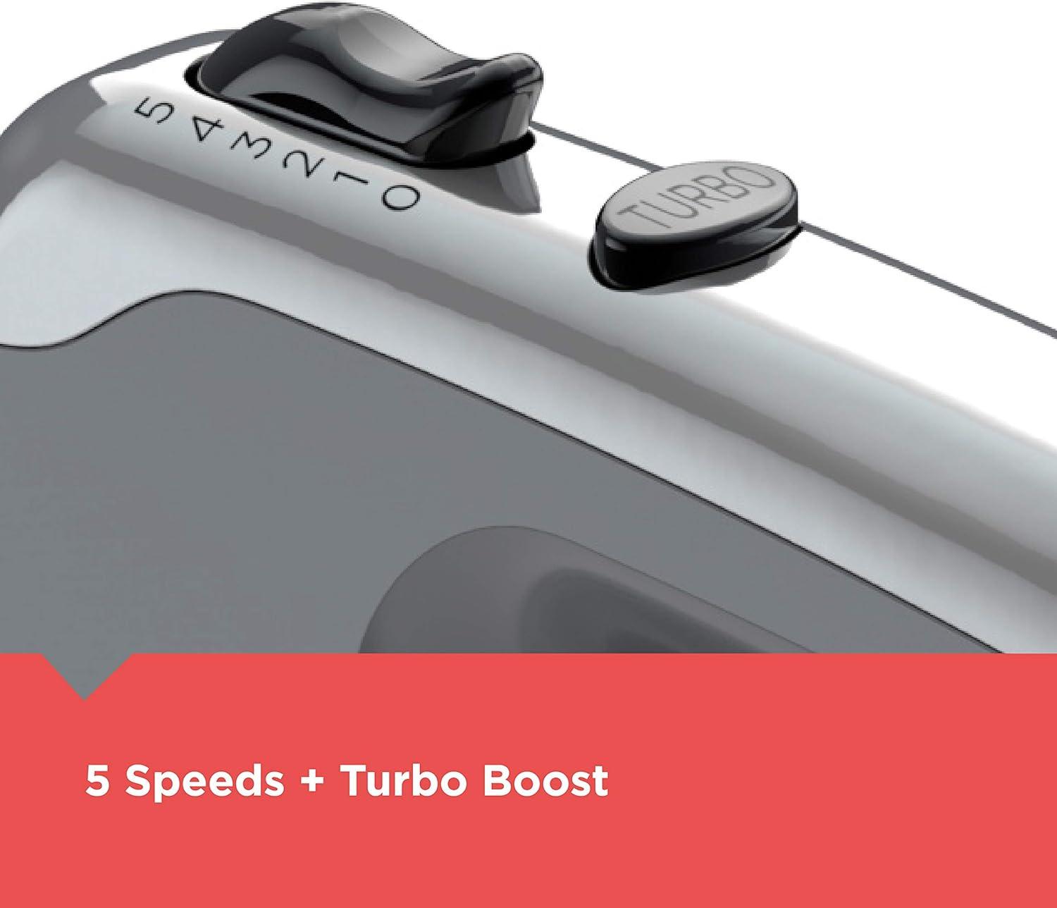 5 Speeds + Turbo Boost: Find the right speed for every mixing task. Plus, you can slowly increase speed for optimal mixing consistency and to prevent messes.