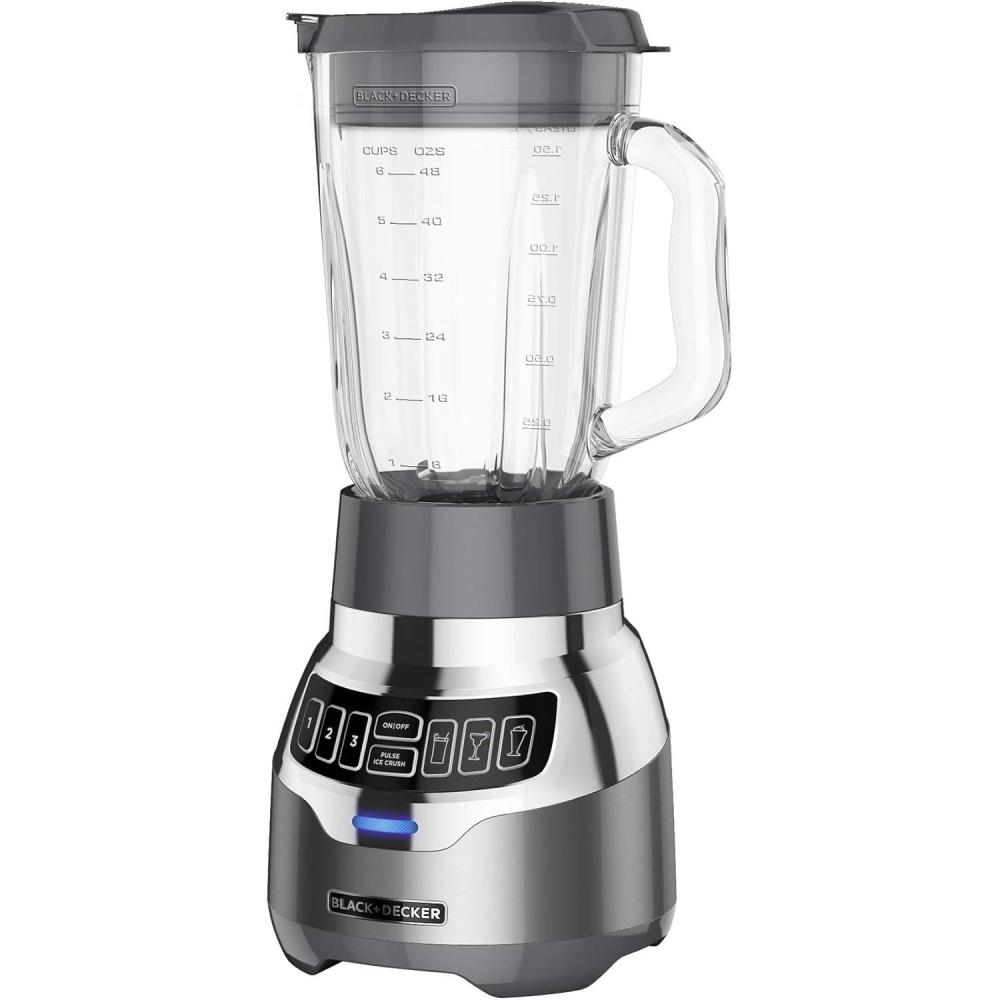 It's all in the name with the BLACK+DECKER Power Crush multi-function blender. This premium blender uses 700W of power* to pulverize ice and other tough ingredients to create delicious smoothies, shakes, and more. The QuadPro blade is versatile enough to make iced drinks, soups, purees, and even crumbs (bread, cookie, or cereal) to use in other recipes. Use the intuitive four speed control buttons to find the perfect consistency. Then enjoy easy pouring with the hinged reclose able pour spout and perfect pour glass jar. Plus, cleanup is simple with the Easy clean function that uses the motion of the blending blade to loosen caked-on food, and all removable parts are dishwasher-safe. Fast and powerful blending, no-mess serving, and easy cleanup— BLACK+DECKER Power Crush is the only blender you need. Peak performance refers to the maximum power recorded for 100ms during blending.