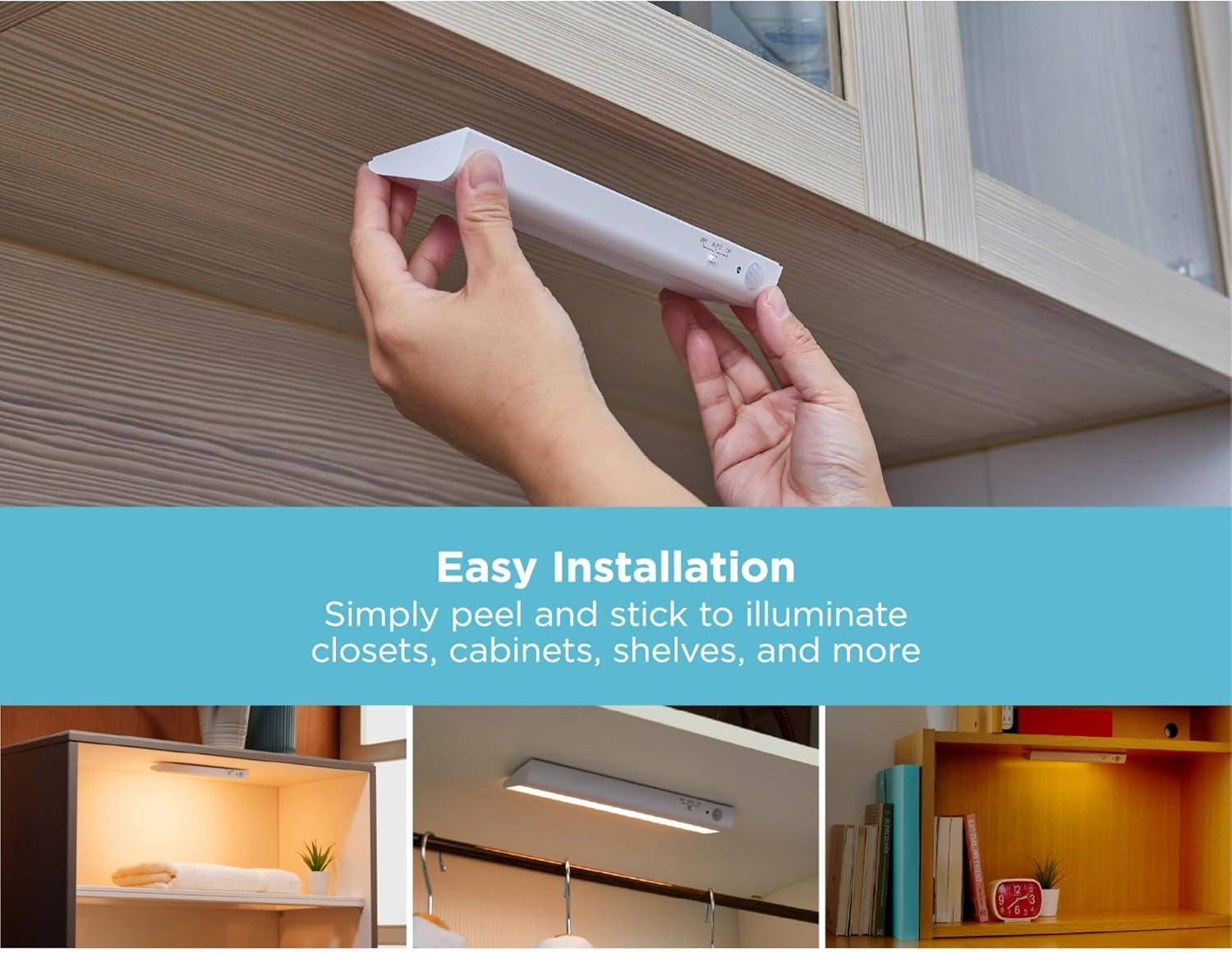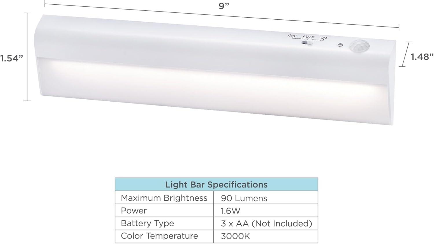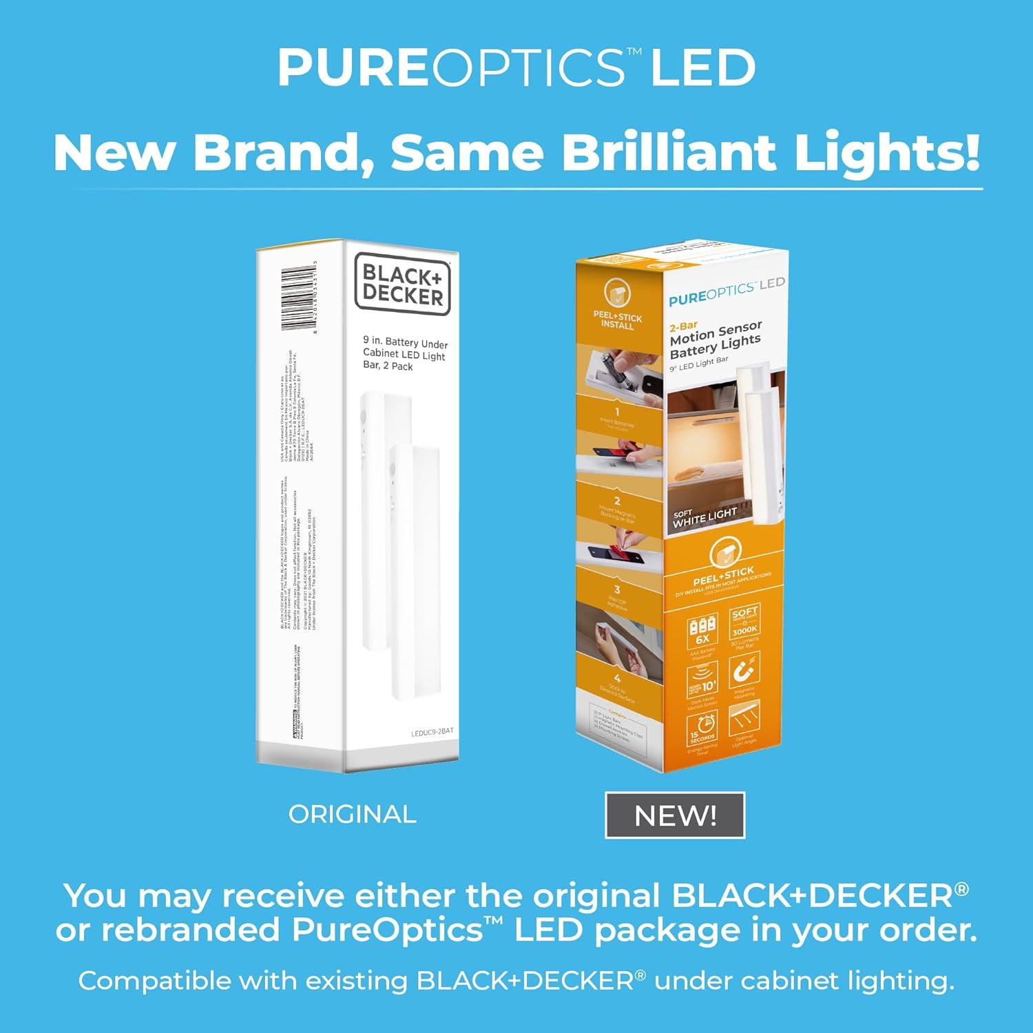 Looking to make your closet or pantry come to life with lighting? Well, look no further because the BLACK+DECKER PureOptics Battery Operated Light Bar Kit is exactly what you need! Whether you want to illuminate your laundry room, pantry, closet, storage room, attic – the opportunities are endless – this lighting kit features an optimal angled light bar that widely spreads light to illuminate more space in even the smallest of areas. Have your hands full with clothes or groceries? This light bar features three different settings that include automatic lighting with darkness and motion sensor, so all it takes is the quick wave of the hand to easily turn these lights on; you can even use it as night light. This easy to use kit only requires magnetic assembly with the provided mounting clip for frustration-free setup. This 1-pack of 9” light bar is powered by 3 AA batteries, which means there are no wires, no mess, just a wireless, battery operated lighting kit that can transform any space – no matter the size – in just seconds! Simply peel and stick the light bar to seamlessly showcase any space of your choosing.