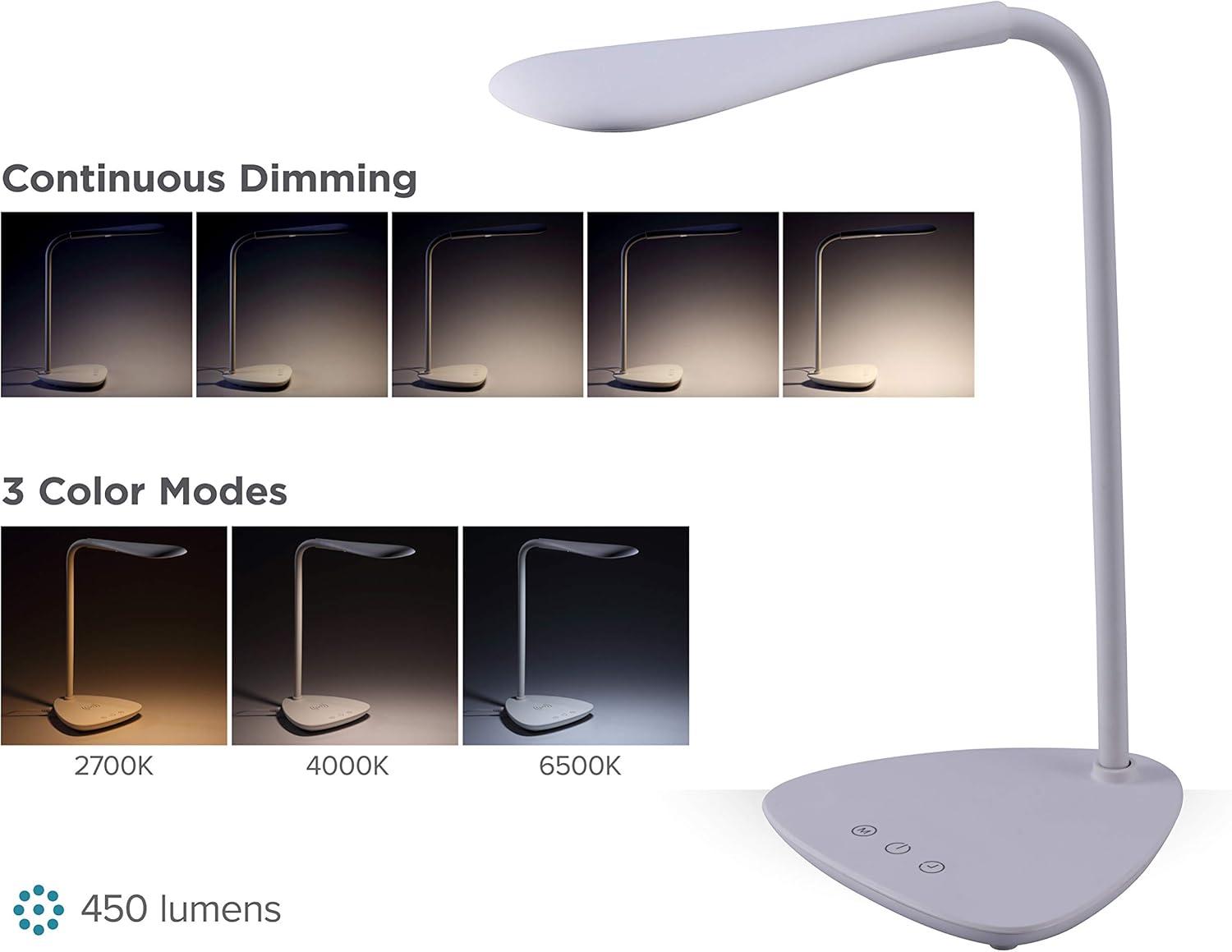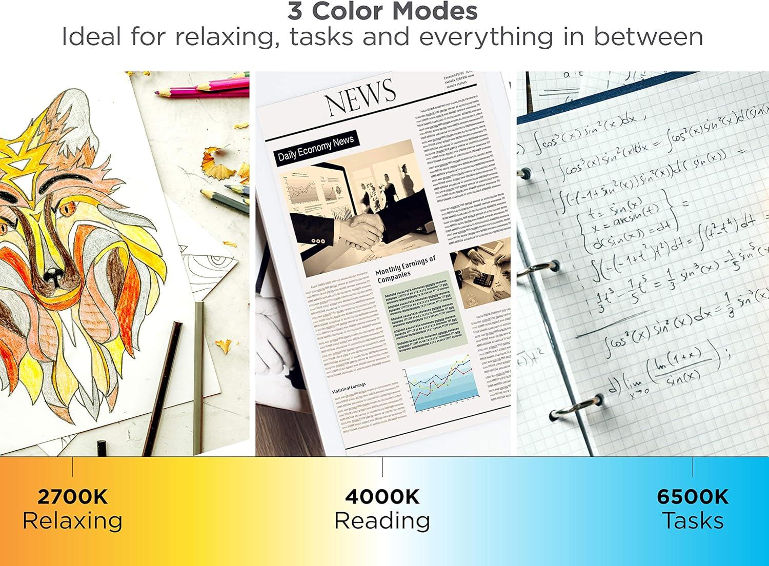 Three (3) adjustable color temperature modes for relaxing, reading + tasks (2700K, 4000K, 6500K)