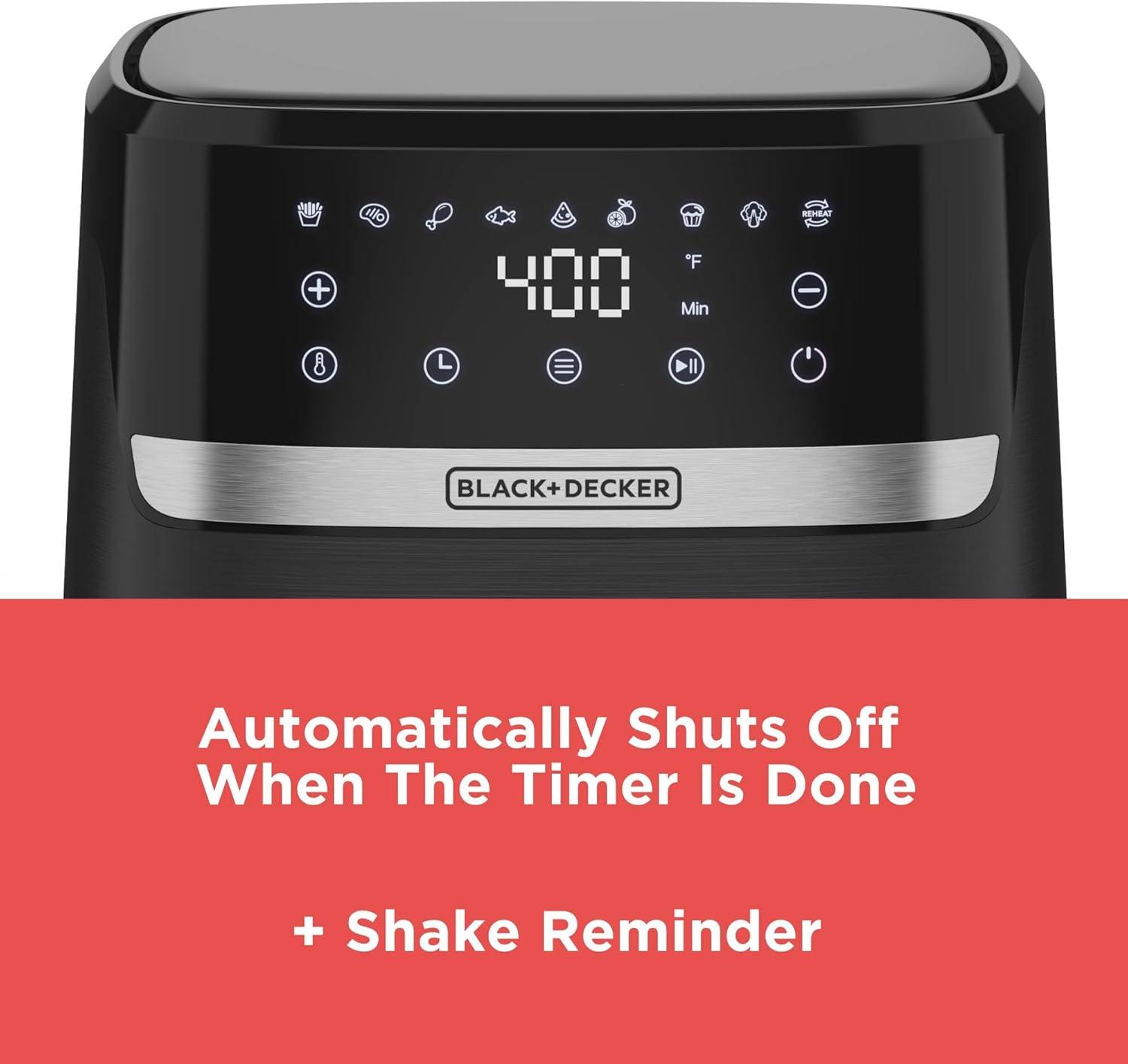 BLACK+DECKER Purifry 6QT Air Fryer, Crispy Deep Fried Taste without the Fat, Plus Bake, Dehydrate, and Keep Food Warm, Digital Touchscreen and Auto Shut-Off(4 QT)