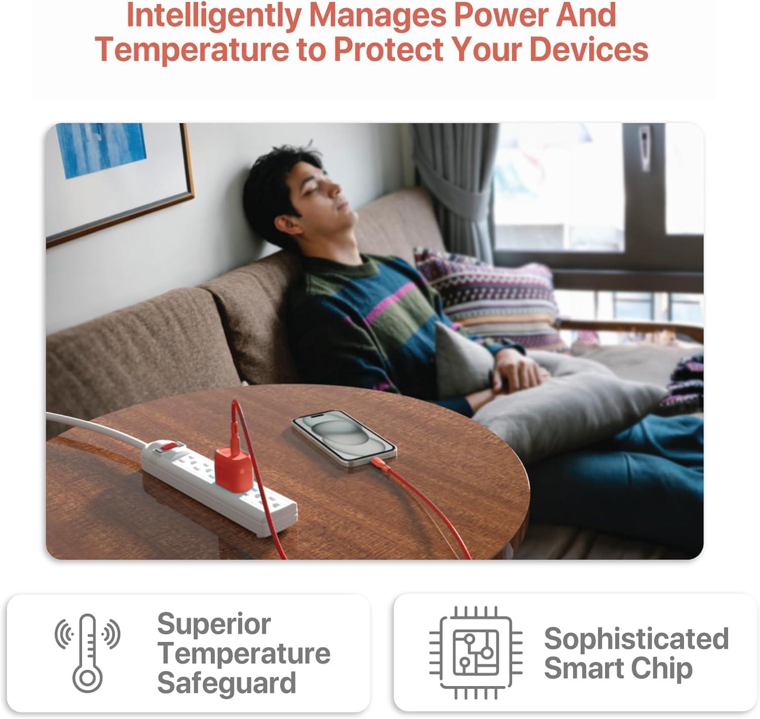 High Efficiency Charging for All Phones — With its simultaneous USB and Type C ports, this 38W wall charger ensures fast and efficient charging for all phone models, including the latest ones