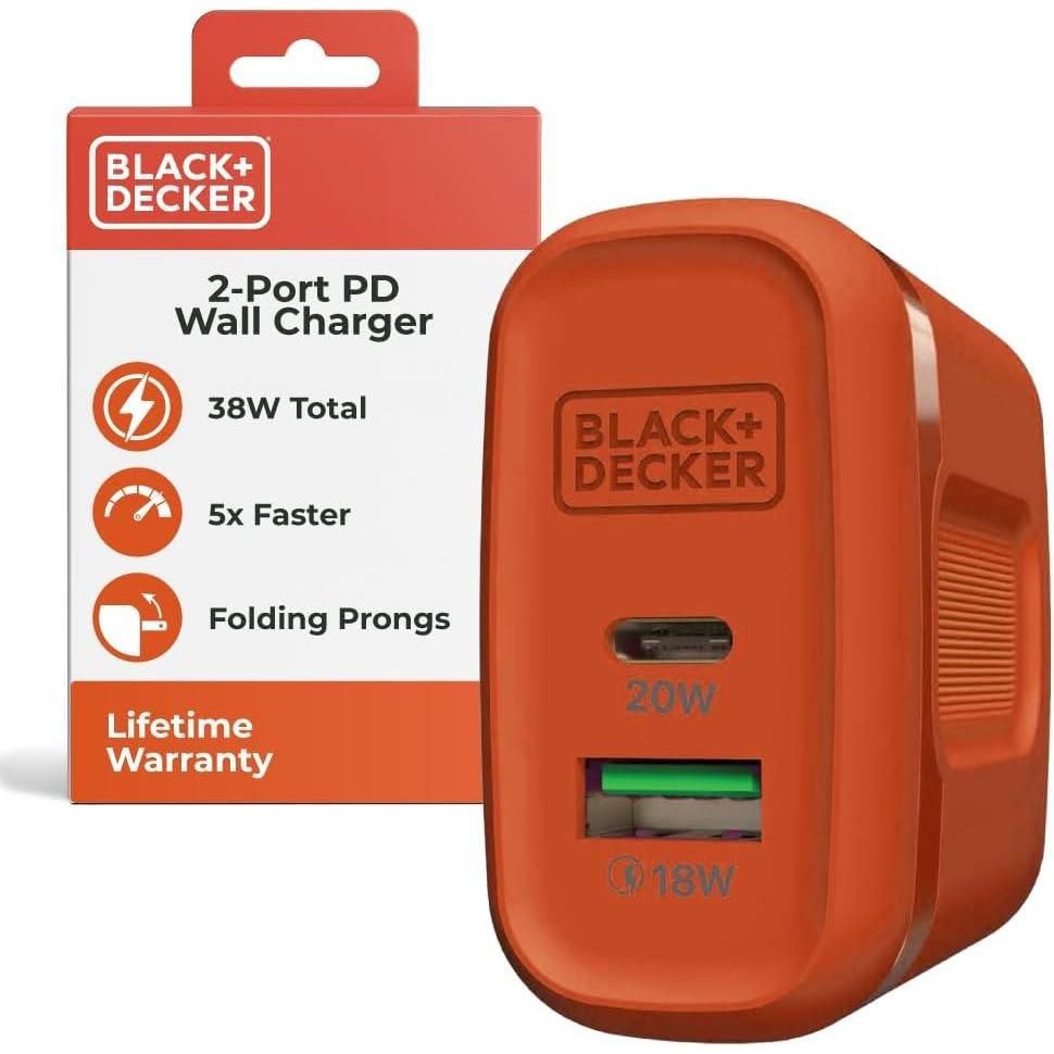 BLACK+DECKER Quick-Charge PD Wall Charger, 2-Port, 38W – USB & Type C Wall Plug – Compact Power Block USB C – Fast Charger Adapter Power Delivery & Qualcomm QC 3.0 – Perfect for Home, Office, Travel(Black)