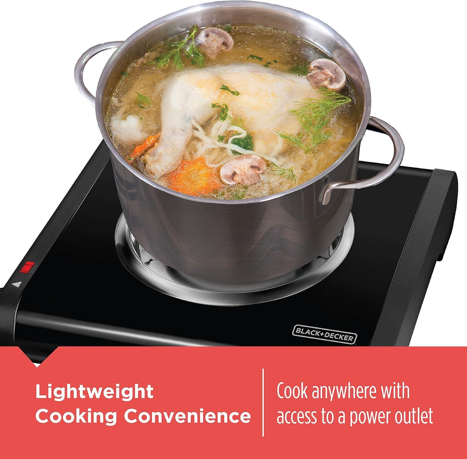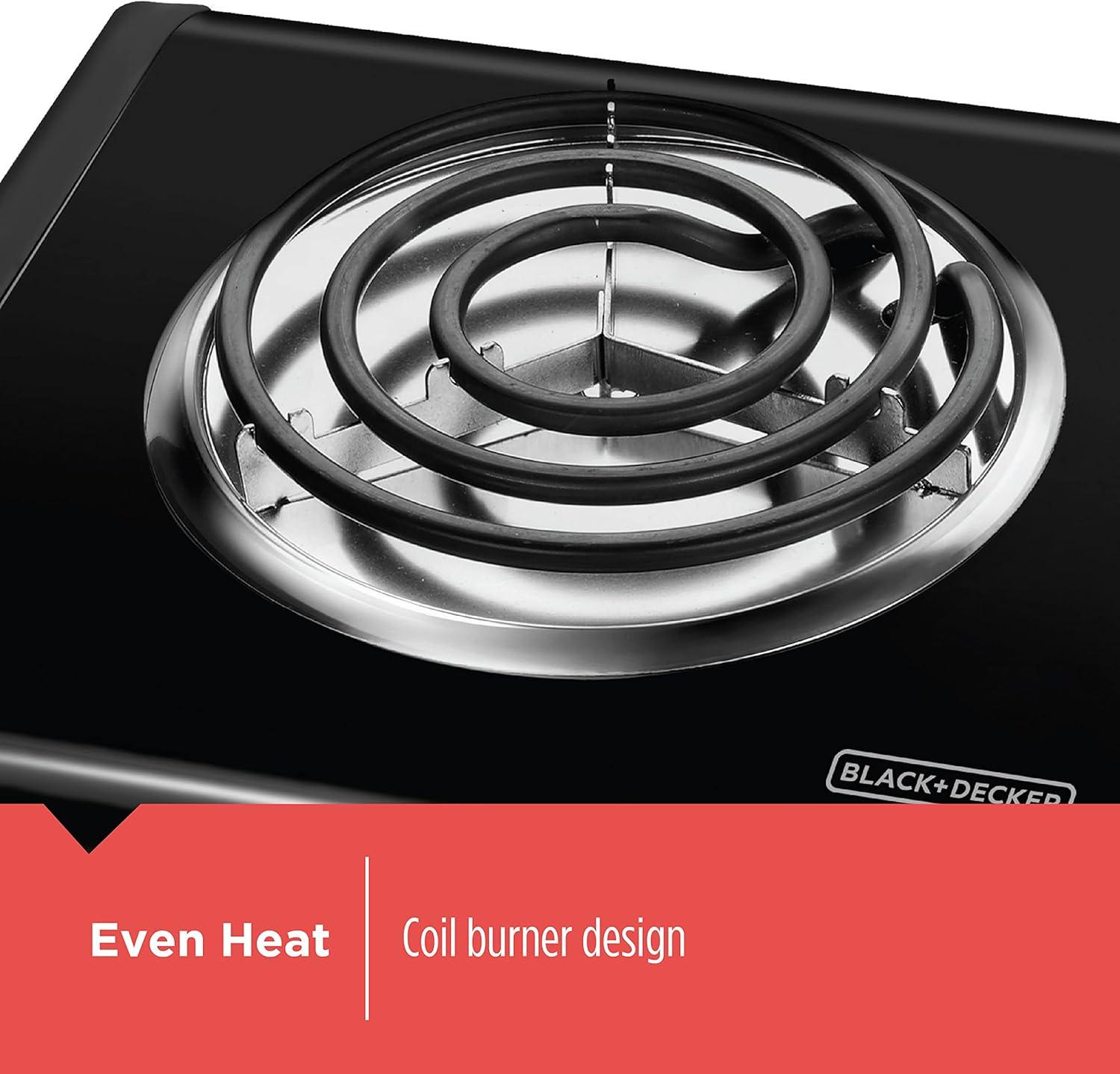 Size:Single Burner Black & Decker, Black, Single Buffet Range, Single Coiled Element To Effectively Keep Food Hot, Adjustable Temperature Controls To Select Temperature For Your Needs, Power Indicator Lights To Indicate When Range Is On, Rubberized Non-Slip Feet, 2 Year Limited Warranty