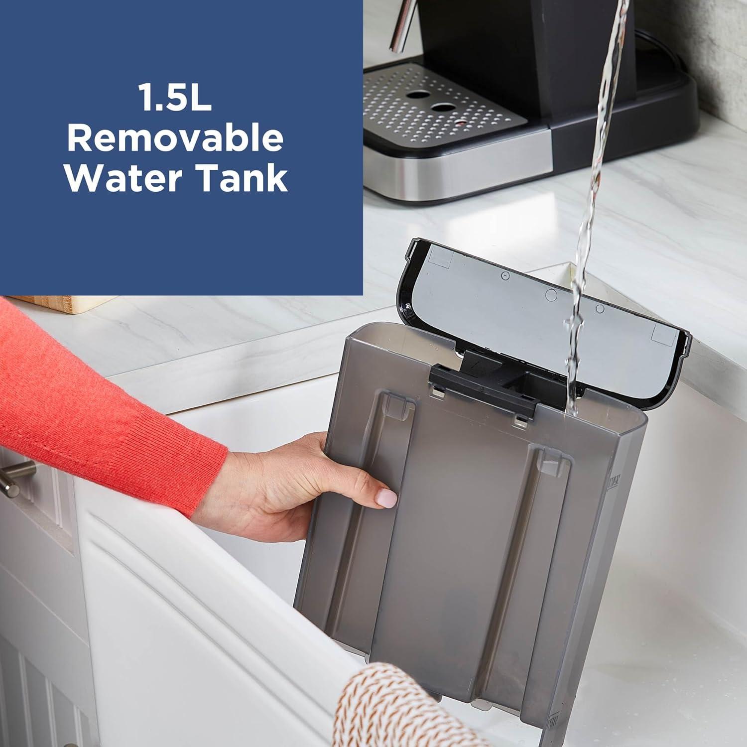CONVENIENT REMOVABLE WATER TANK: Water tank can be removed for easy filling and cleaning. Generous 1.5L capacity means fewer trips to refill.