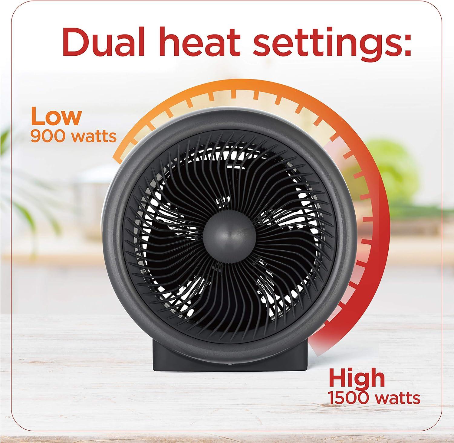 Fan and Heater Combo : With digital controls & LED indicator lights, this heater for bedroom has 4 settings: Low Fan, High Fan, Low (900 Watts), or High (1500 Watts) between 65°F – 85°F.