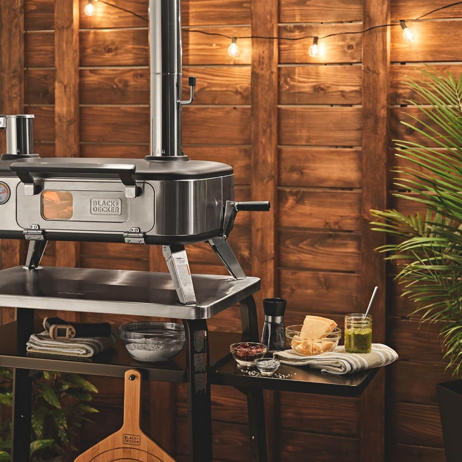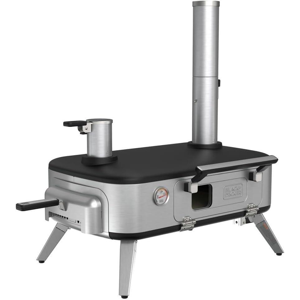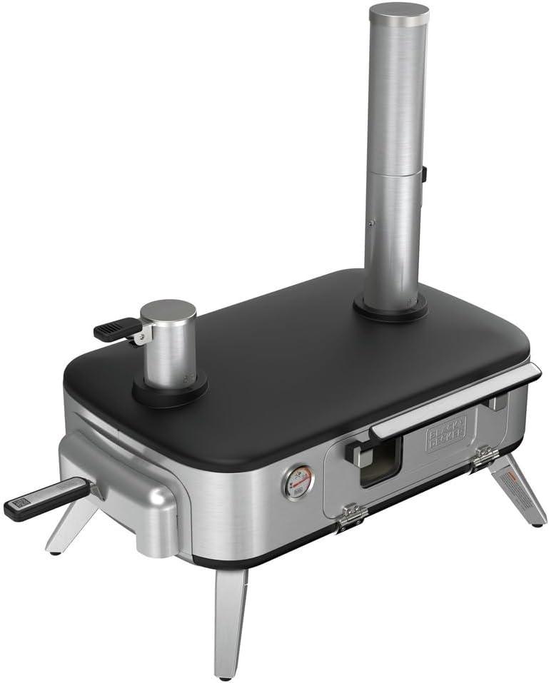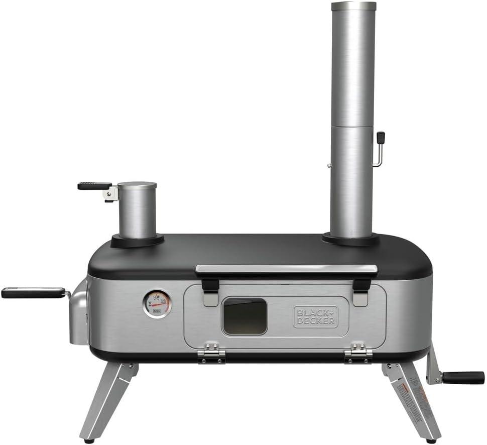 BLACK+DECKER vera Pizza Oven, Outdoor, Wood - Charcoal - Pellet Fired Pizza Oven, Rotating Handle and Temperature Gauge, Portable with Folding Legs for Easy Storage (BPZ123TS)(Pizza Oven)