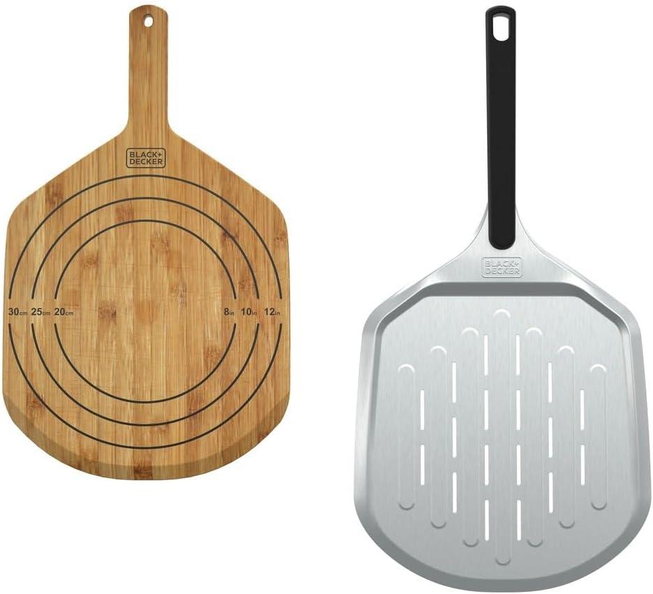 BLACK+DECKER Pizza Oven Wooden Peel, Pizza Stone, 12 Inch (BPZA12WP)(12″ Metal Peel)