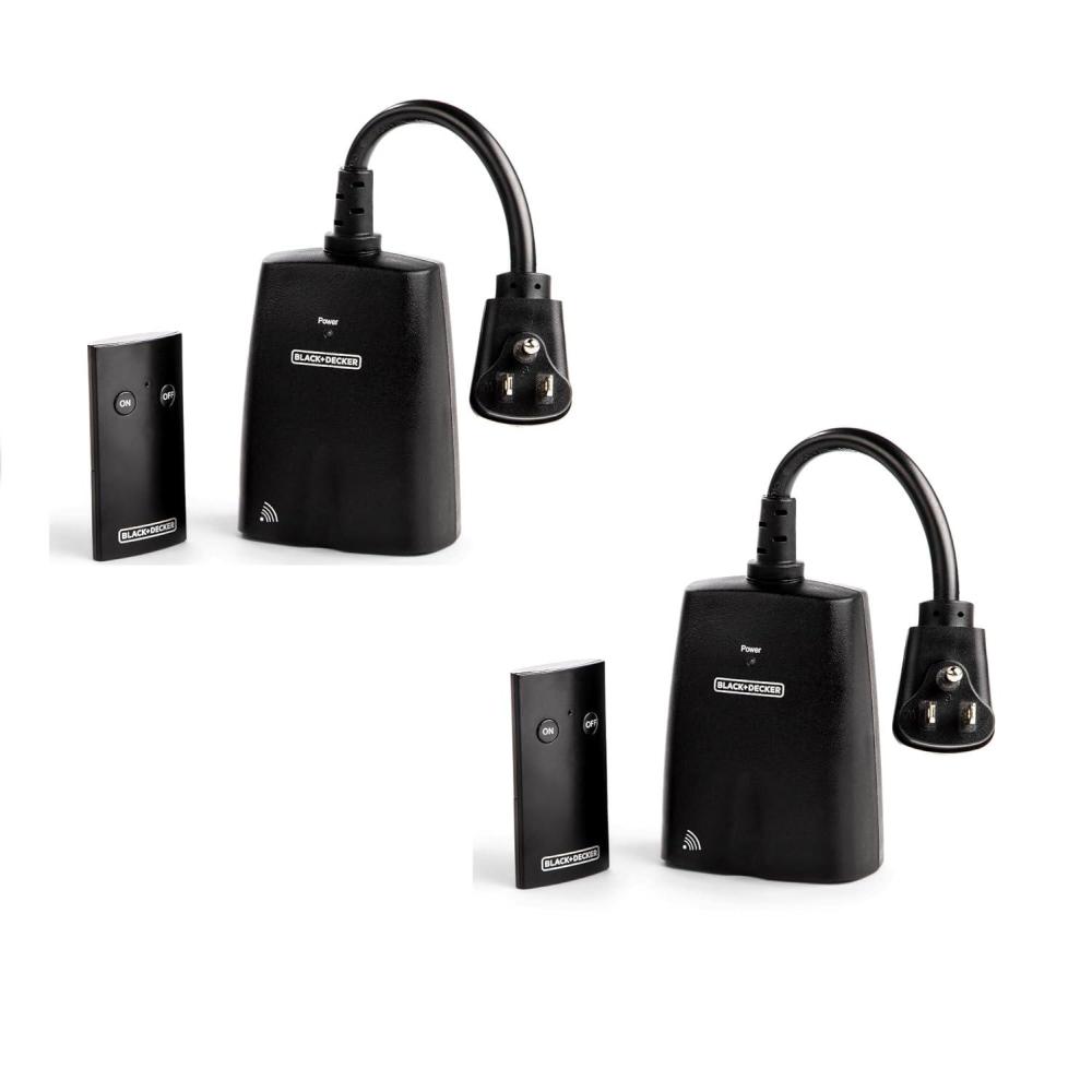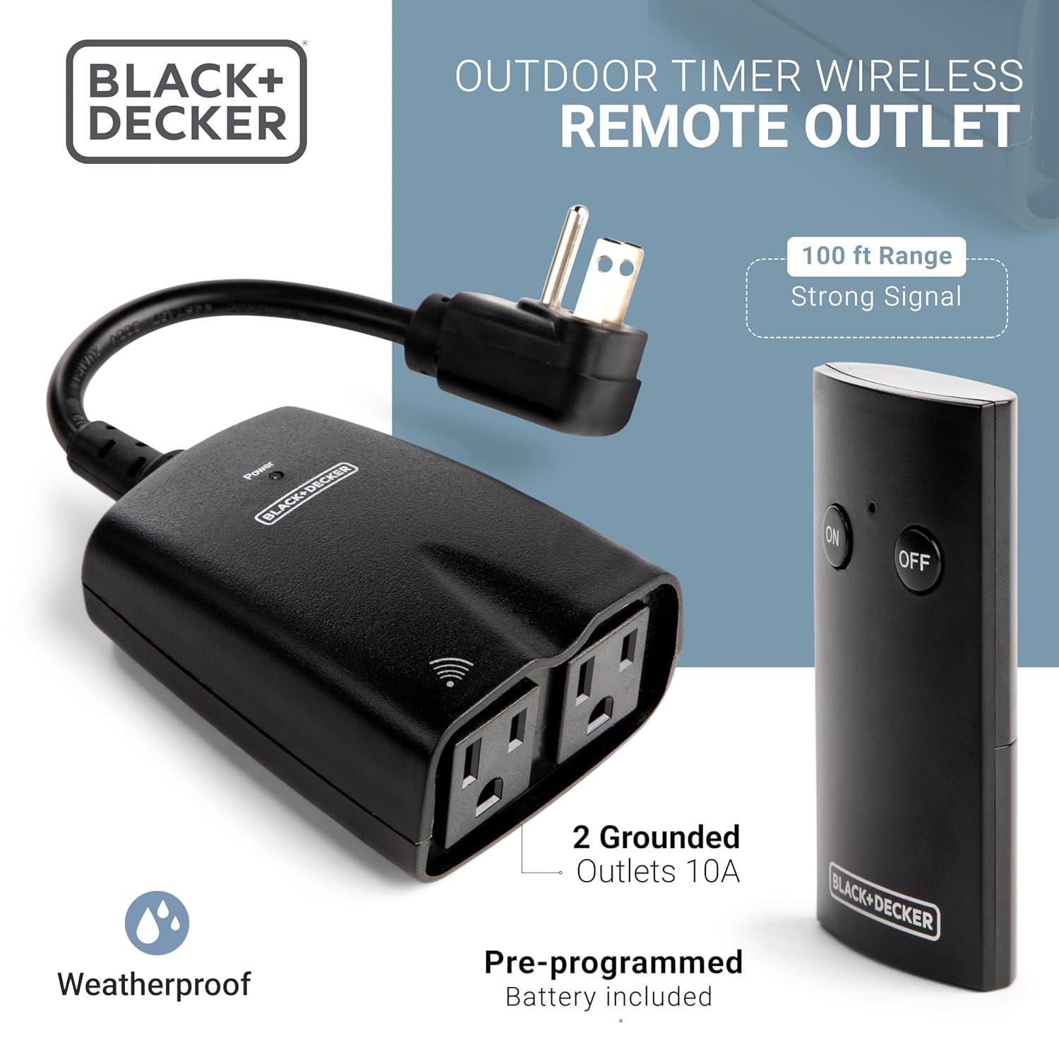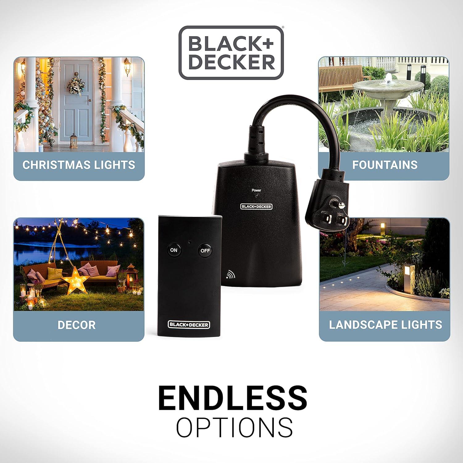 Control Your Yard: Easily control outdoor decor and lights with this Outdoor Light Outlet Plug from Black + Decker! Complete with 1 wireless outlet remote, this dual plug is the perfect way to use any device with the push of a button.