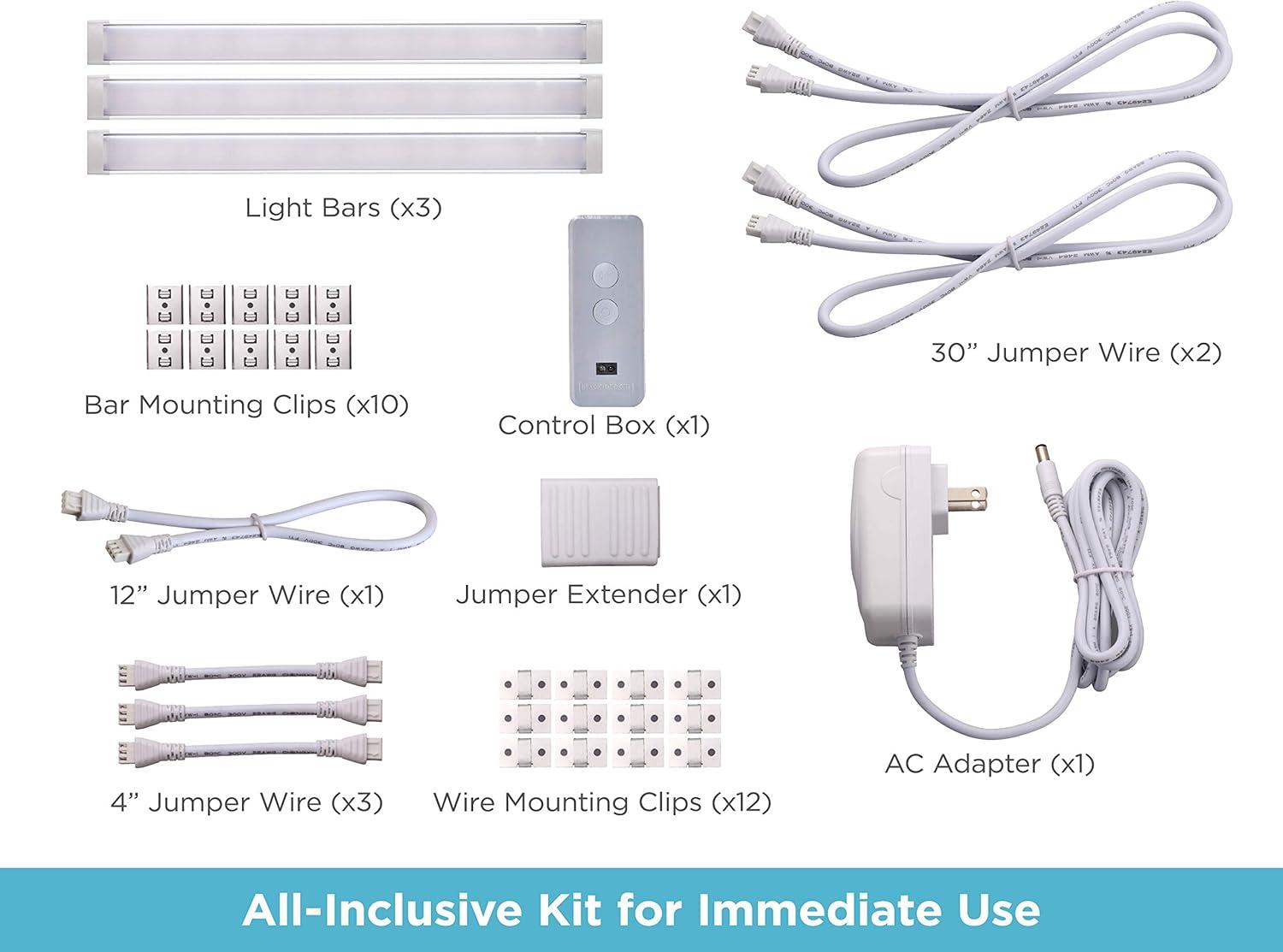 BLACK+DECKER Works with Alexa Smart Under Cabinet Lighting, Adjustable LEDs, 24″ Bar, White(9″ 3-Bar)