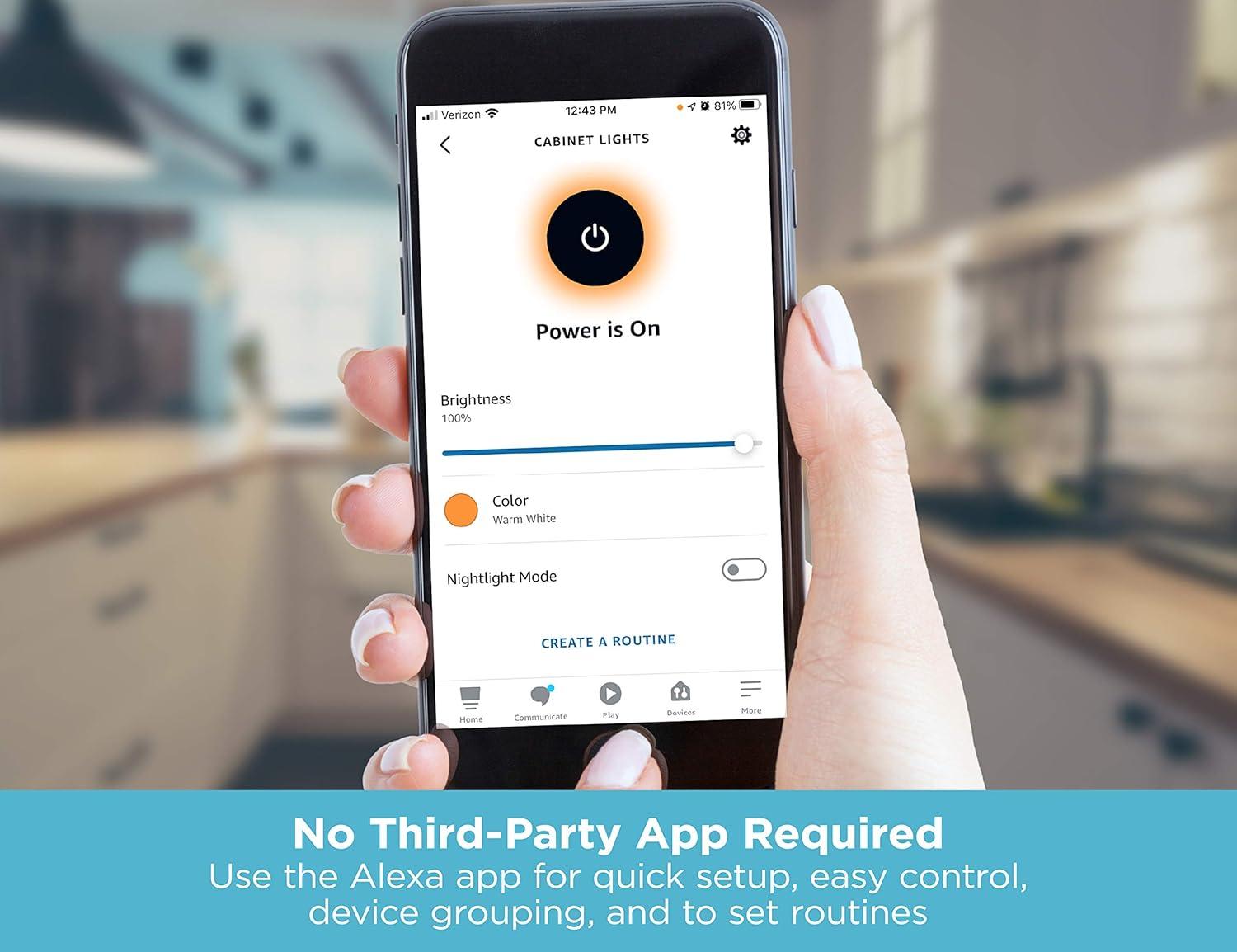 Light up your kitchen with the simple tap of an app or voice command. Create a lighting and ambient experience unlike any other with our under cabinet lighting that’s compatible with Alexa devices; making it a device with no third-party app required. Whether you're in the living room and want to turn the lights on in your kitchen without getting up from the couch, or you're on your way home from work and want to walk in to a lit-up house, you can virtually turn your under cabinet lights on from anywhere. Dim the lights or set a routine with the app or voice control without leaving your bed. The best part? You can even pair these lights with other smart devices in your kitchen, closet, garage, workshop or anywhere in your home, for easy lighting control in any area of your house! This 1-pack of 24” ultra-thin light bars illuminate a wide, flicker-free zone that can be changed from full brightness with soft white, white or daylight white to night mode in a matter of seconds. Worried about installation? This voice-activated smart LED lighting solution can be easily installed in a matter of minutes with no stress, no tools and no confusion for frustration-free installation. You can even turn the lights on and off by waving your hand under the motion sensor for touch-free activation that leaves your lights bright and your kitchen clean.