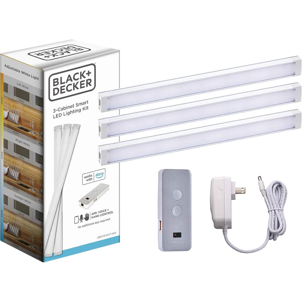 BLACK+DECKER Works with Alexa Smart Under Cabinet Lighting, Adjustable LEDs, 24" Bar, White(9" 3-Bar)